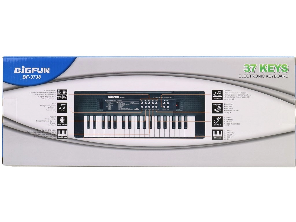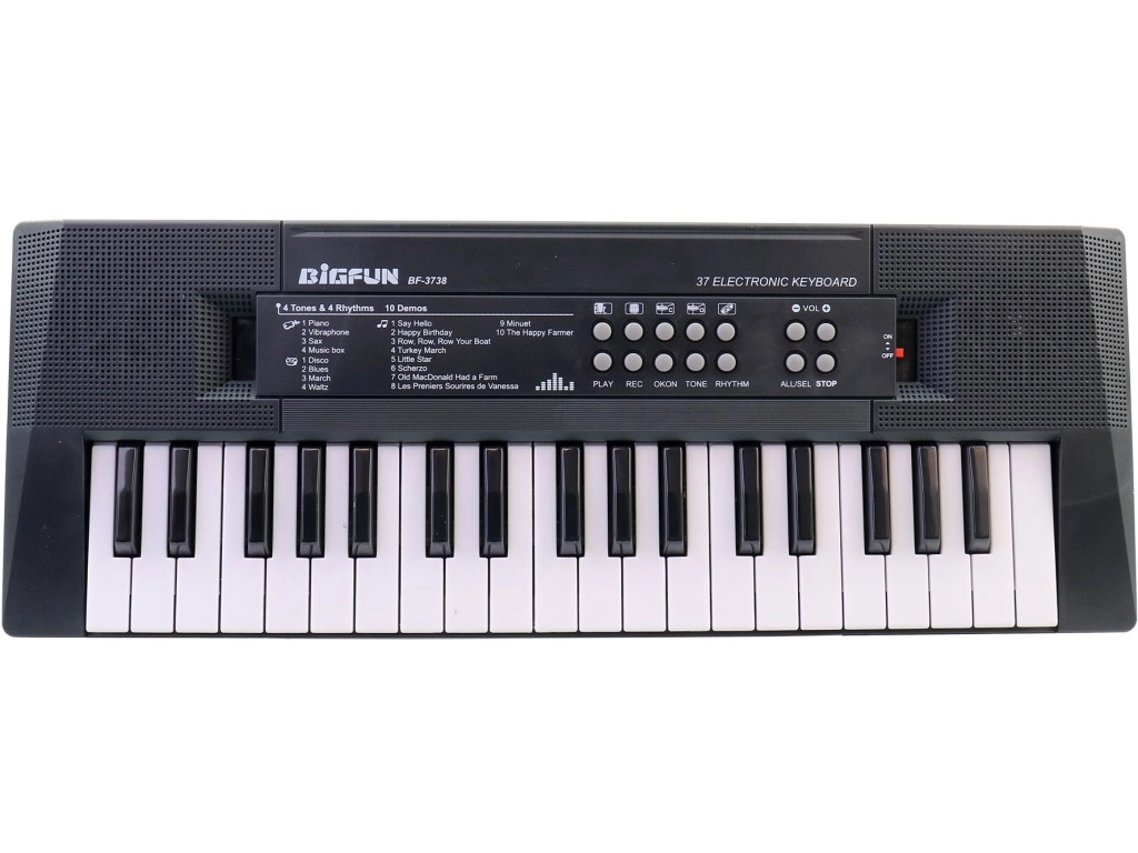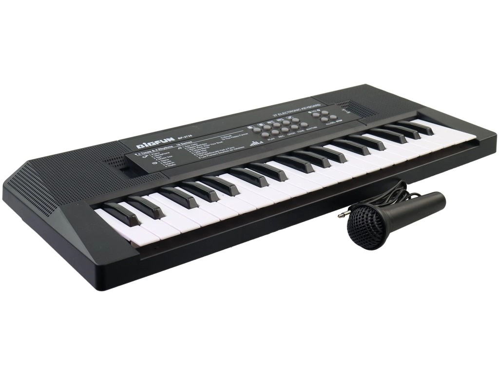 Piano electrónico compacto para niños a partir de 3 años que ofrece una forma divertida de desarrollar habilidades musicales. Gracias a la alimentación por pilas y USB, es práctico en casa y de viaje; es ligero y resistente y, con sus dimensiones de 41,6 × 15,8 × 4,5 cm, cabe en cualquier habitación.