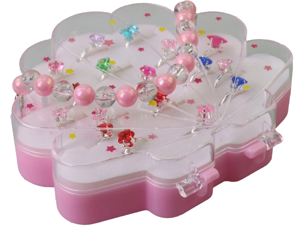 Este juego de anillos es una elección ideal para pequeñas señoritas que aman decorar y jugar a las princesas. Cada anillo está diseñado para ser ligero, cómodo y fácil de colocar en los deditos infantiles. La práctica caja expositora garantiza un almacenamiento ordenado y una bonita presentación, ideal también como regalo.