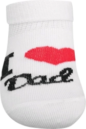 Adorables y cómodos calcetines para bebé con el motivo I ❤️ Mum & Dad, ideales para el uso diario. Gracias al puño elástico no aprietan, mantienen la forma y están confeccionados en algodón de calidad para una suavidad confortable. Perfectos para días más cálidos y como complemento con estilo para tu bebé.