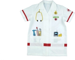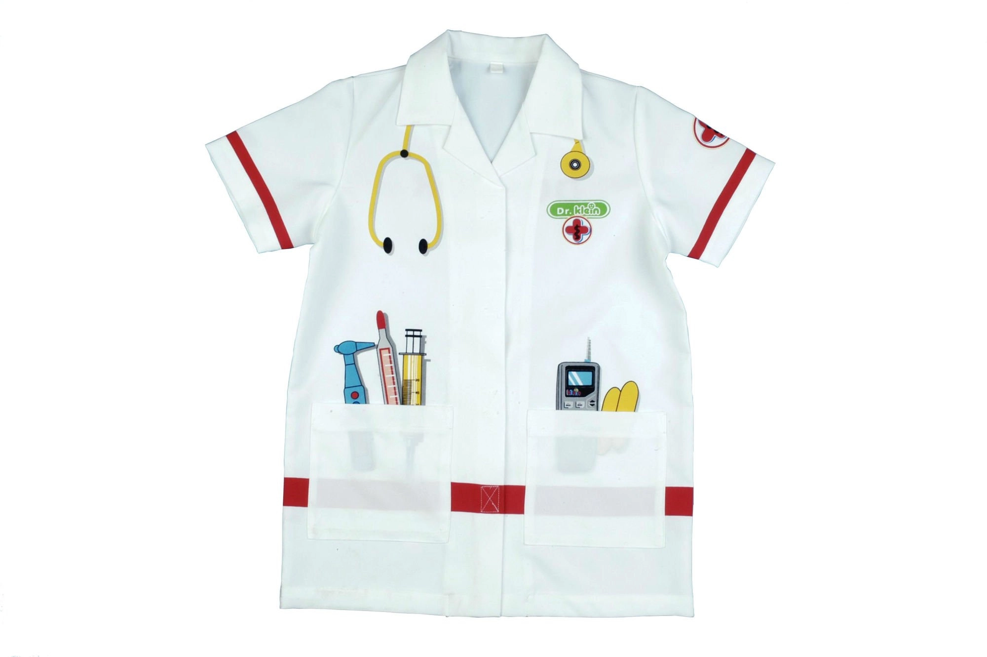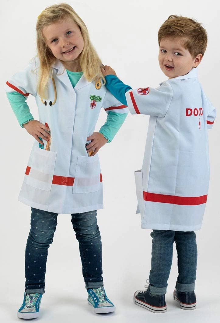 El diseño universal es apto para niñas y niños y, gracias a sus medidas bien pensadas, se ajusta perfectamente a peques de 3–5 años. Dos amplios bolsillos guardan pequeños accesorios para el juego de médicos, para tenerlo todo a mano.