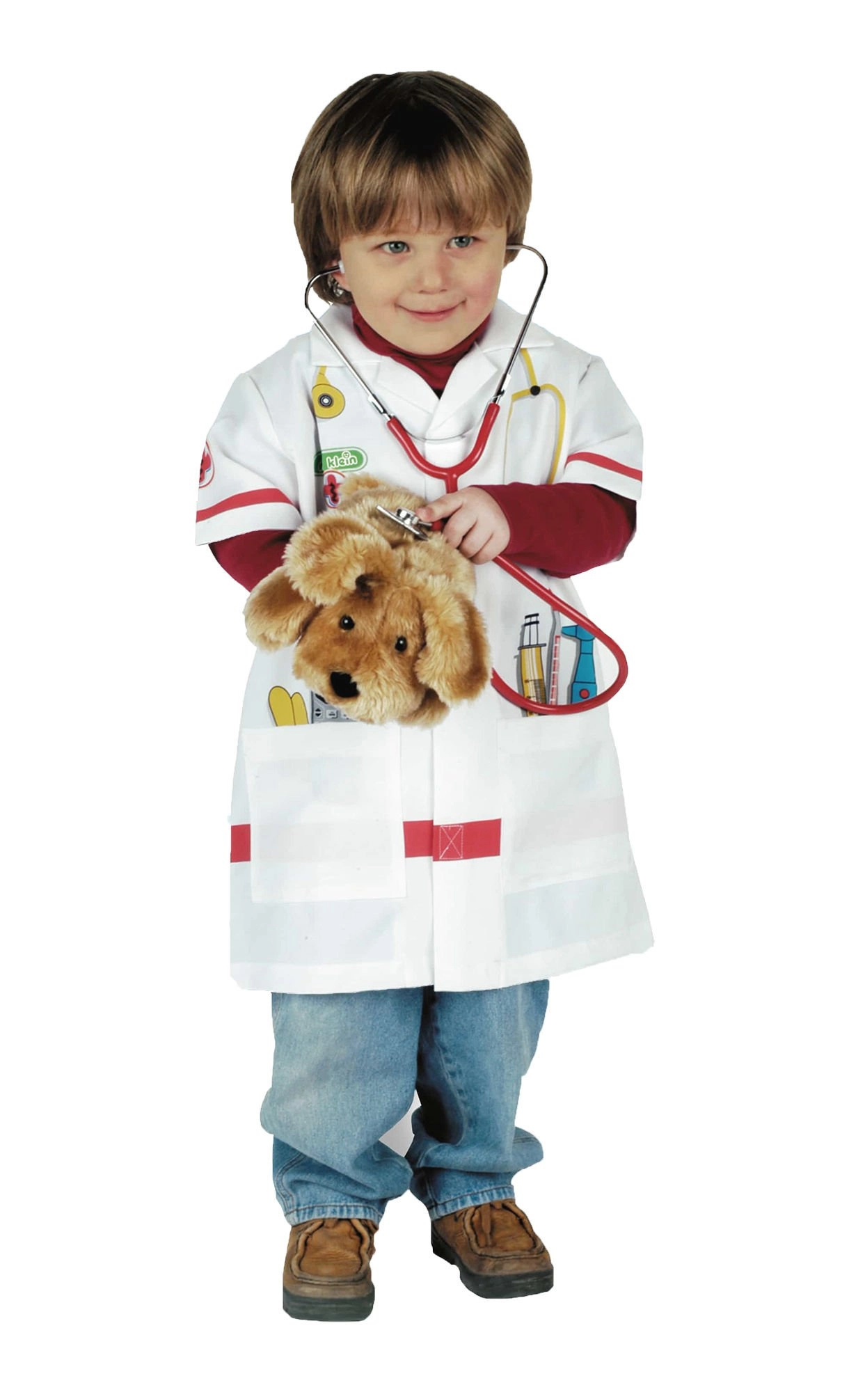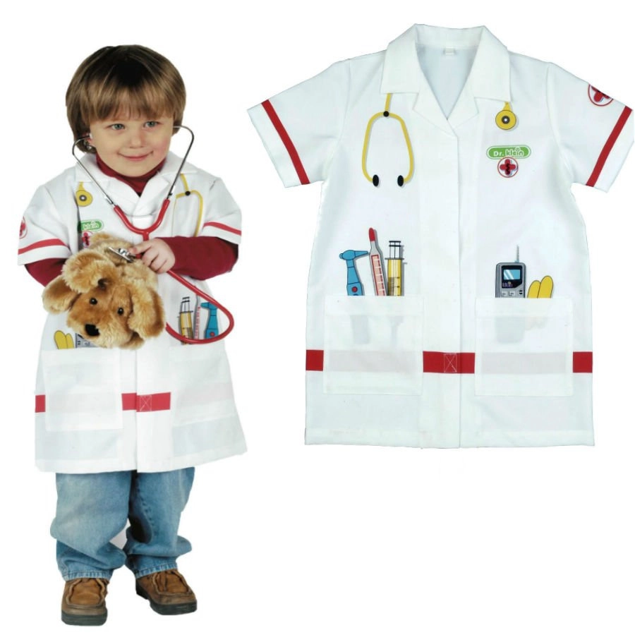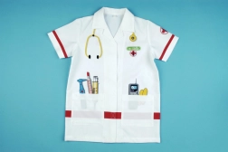 Estetoscopio, termómetro, jeringa y otros motivos fomentan el juego realista de médicos y desarrollan la imaginación infantil.