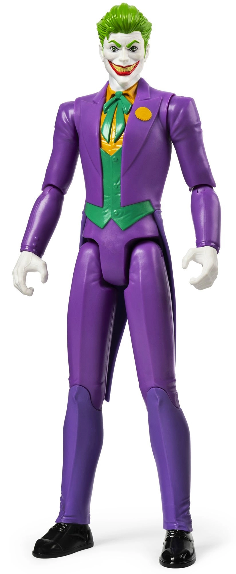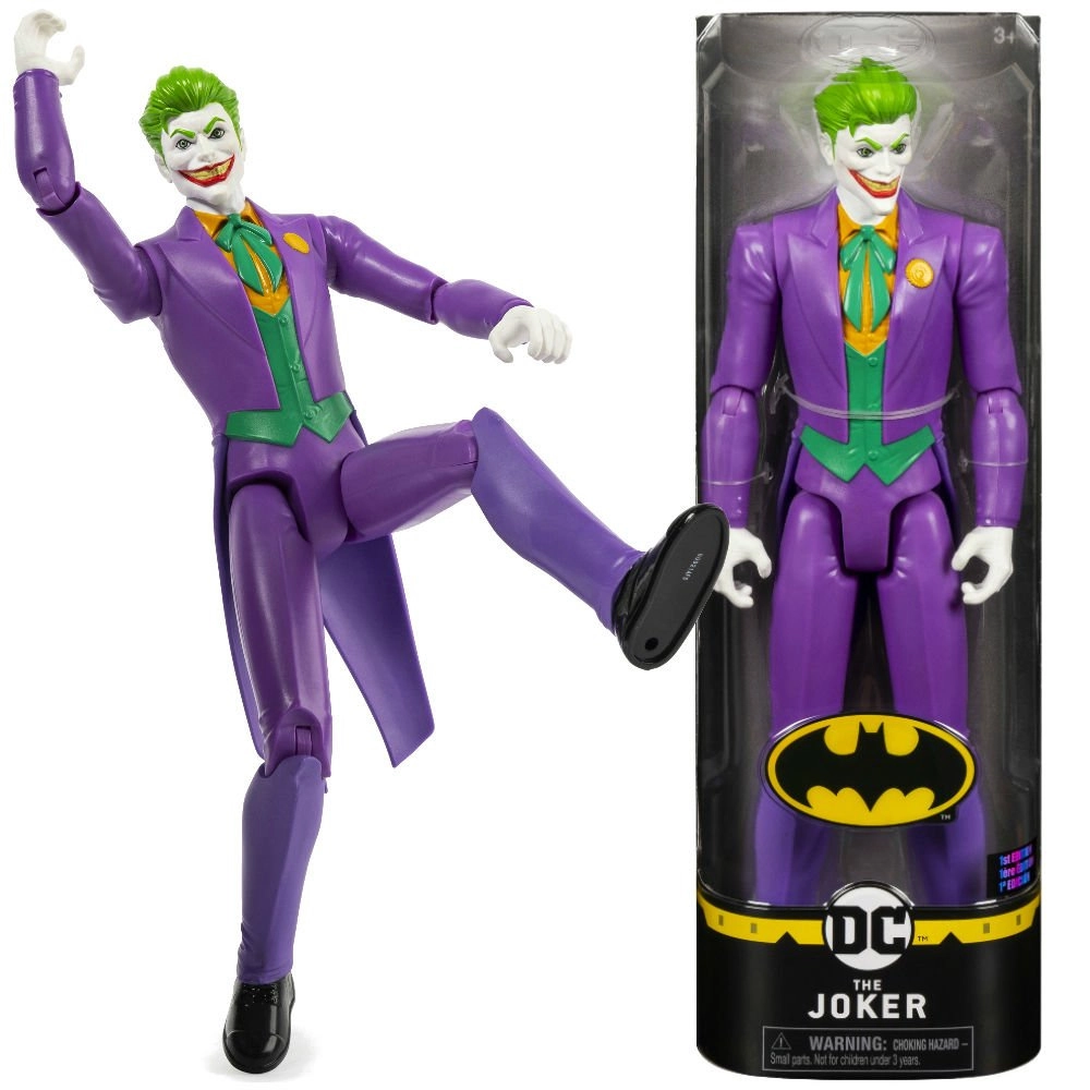 Esta figura del Joker, cuidadosamente detallada, presenta el aspecto clásico del archienemigo del universo DC COMICS: traje morado, cabello verde y sonrisa diabólica. Gracias a la cabeza, brazos y piernas articulados, es ideal para jugar, exhibir y recrear escenas con el Caballero Oscuro BATMAN.