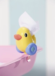 Un divertido clip con forma de patito mantiene las toallitas siempre a mano: ideal para un cambio de muñecas rápido y realista.