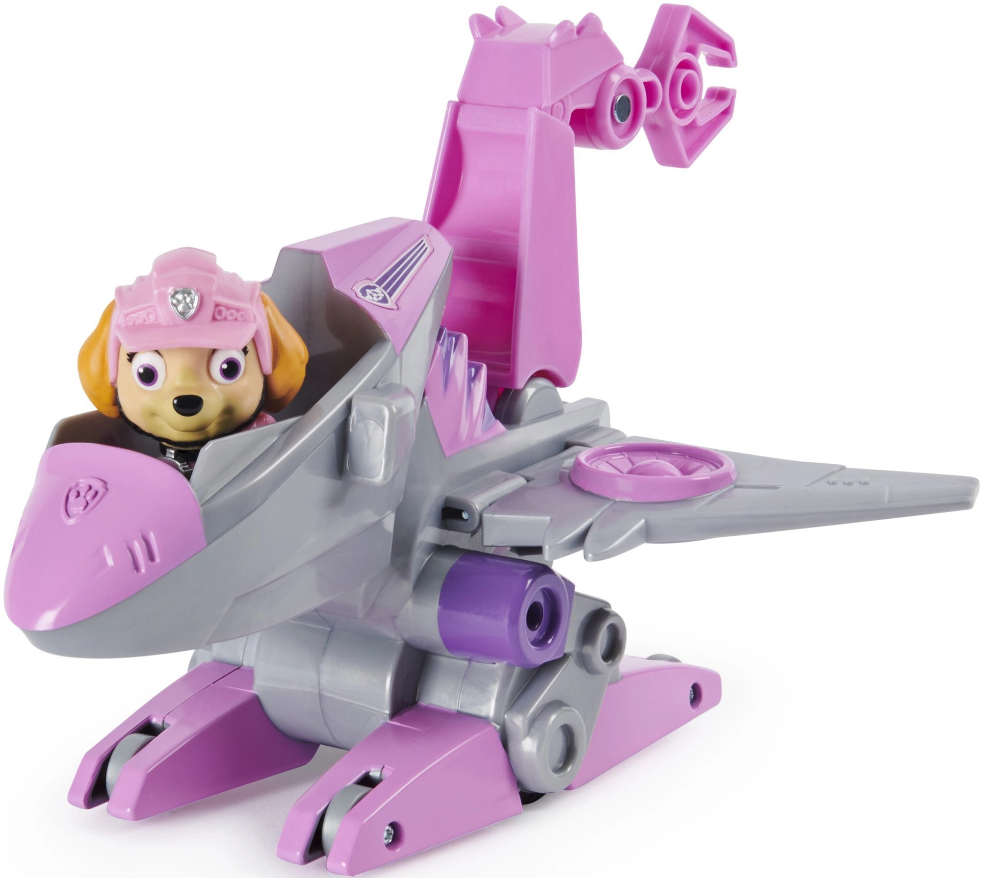 El set de la PATRULLA CANINA trae a los niños a la heroína favorita Skye, la piloto preparada para cualquier misión de rescate. Con un elegante vehículo plateado y rosa con alas y un garfio funcional, las misiones se convierten en historias emocionantes llenas de imaginación. No falta el pequeño dinosaurio sorpresa, que aporta una nueva dimensión al juego.
