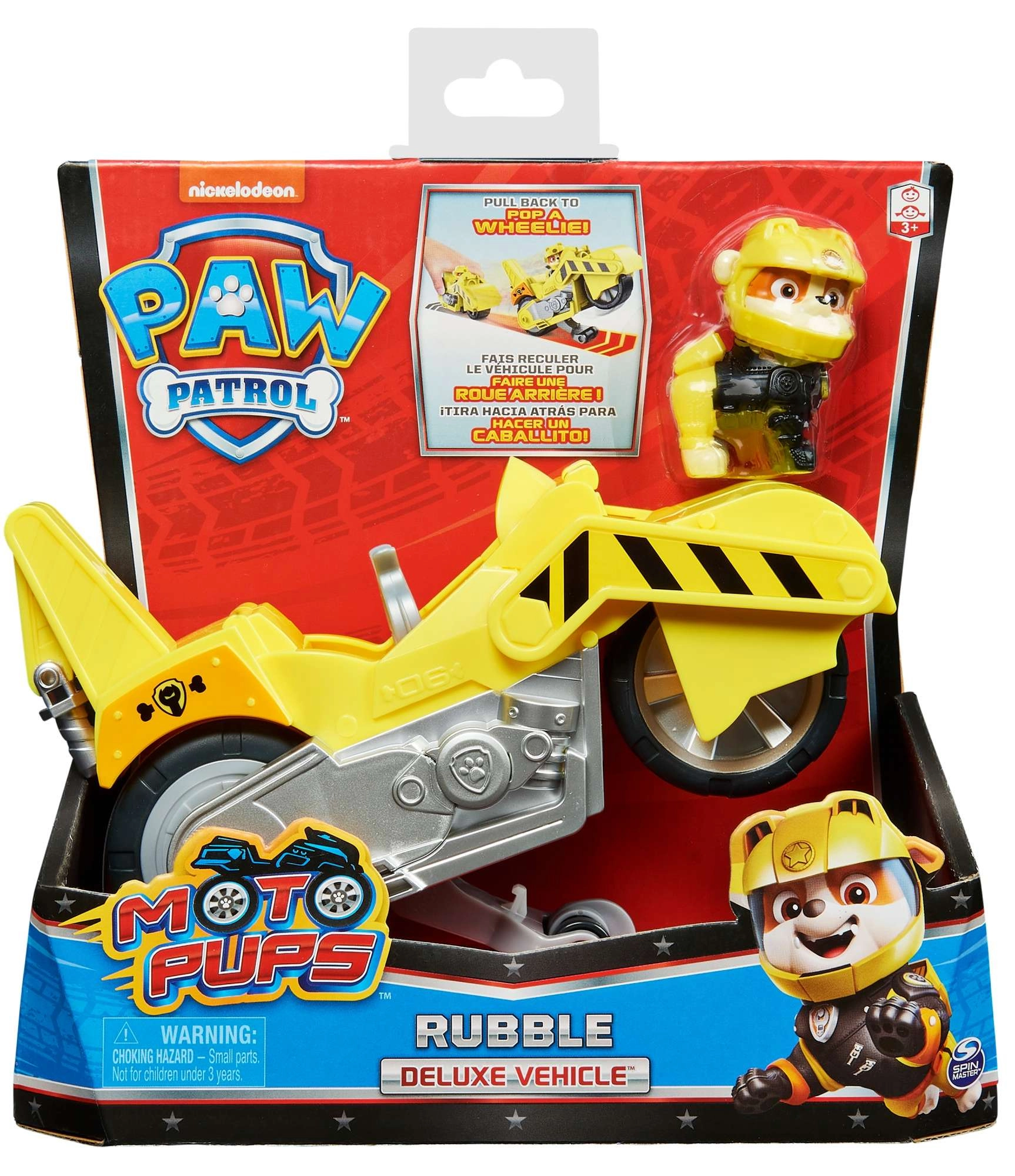 Sal a construir y rescatar con el bulldog Rubble y su motocicleta acrobática amarilla de la serie Moto Pups. Su diseño robusto, los llamativos detalles amarillos y las grandes ruedas garantizan una gran estabilidad, mientras que el mecanismo de inercia aporta mucha diversión a toda velocidad.
