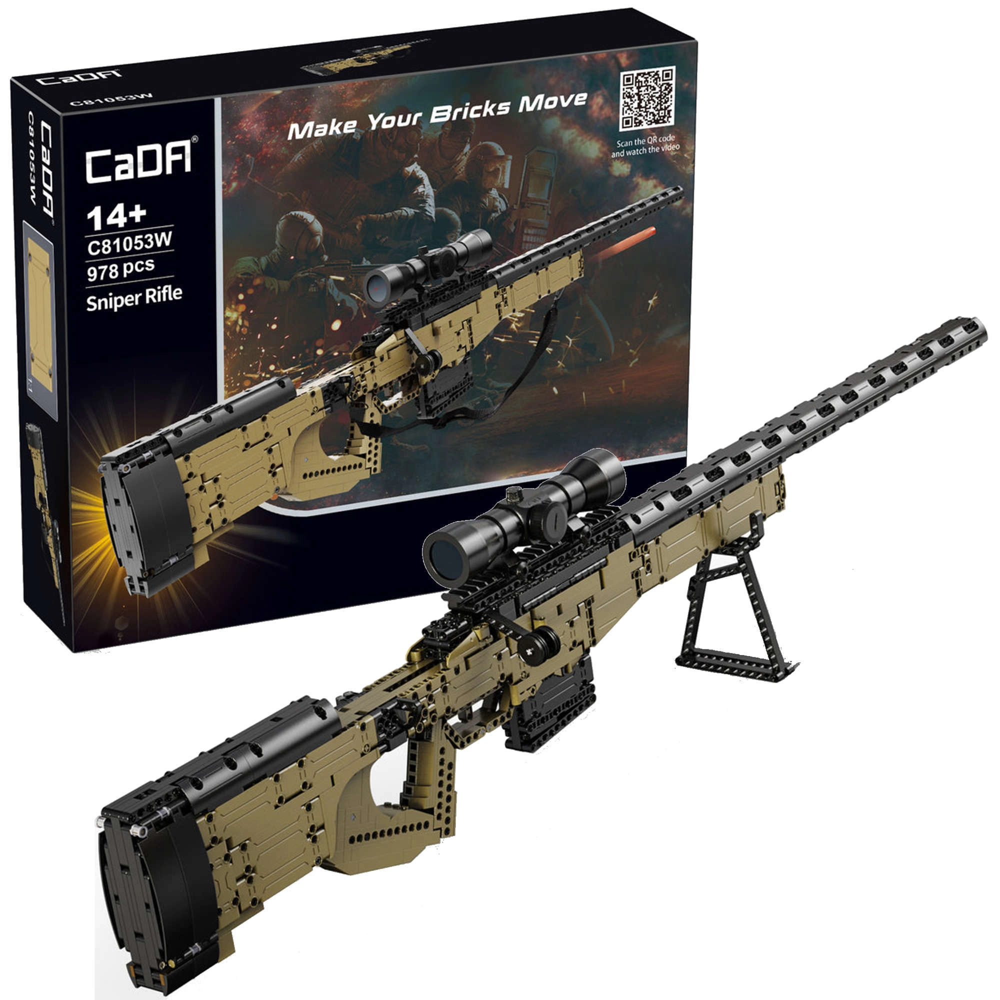 Construye un rifle de francotirador realista con el set de construcción CADA con un total de 978 piezas. El modelo SNIPER RIFLE ofrece elementos funcionales como cargador, óptica y correa de transporte. Las piezas de calidad son compatibles con otras marcas y desarrollan habilidades manuales y la creatividad.