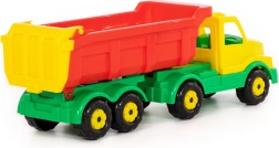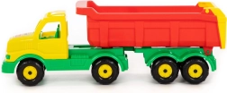 Este robusto camión volquete de plástico con remolque es ideal para pequeños constructores. Gracias a la caja volquete y al portón trasero móvil, los niños pueden trasladar fácilmente arena, bloques u otros objetos pequeños. Su construcción ligera pero resistente es apta para jugar tanto en interiores como en exteriores.