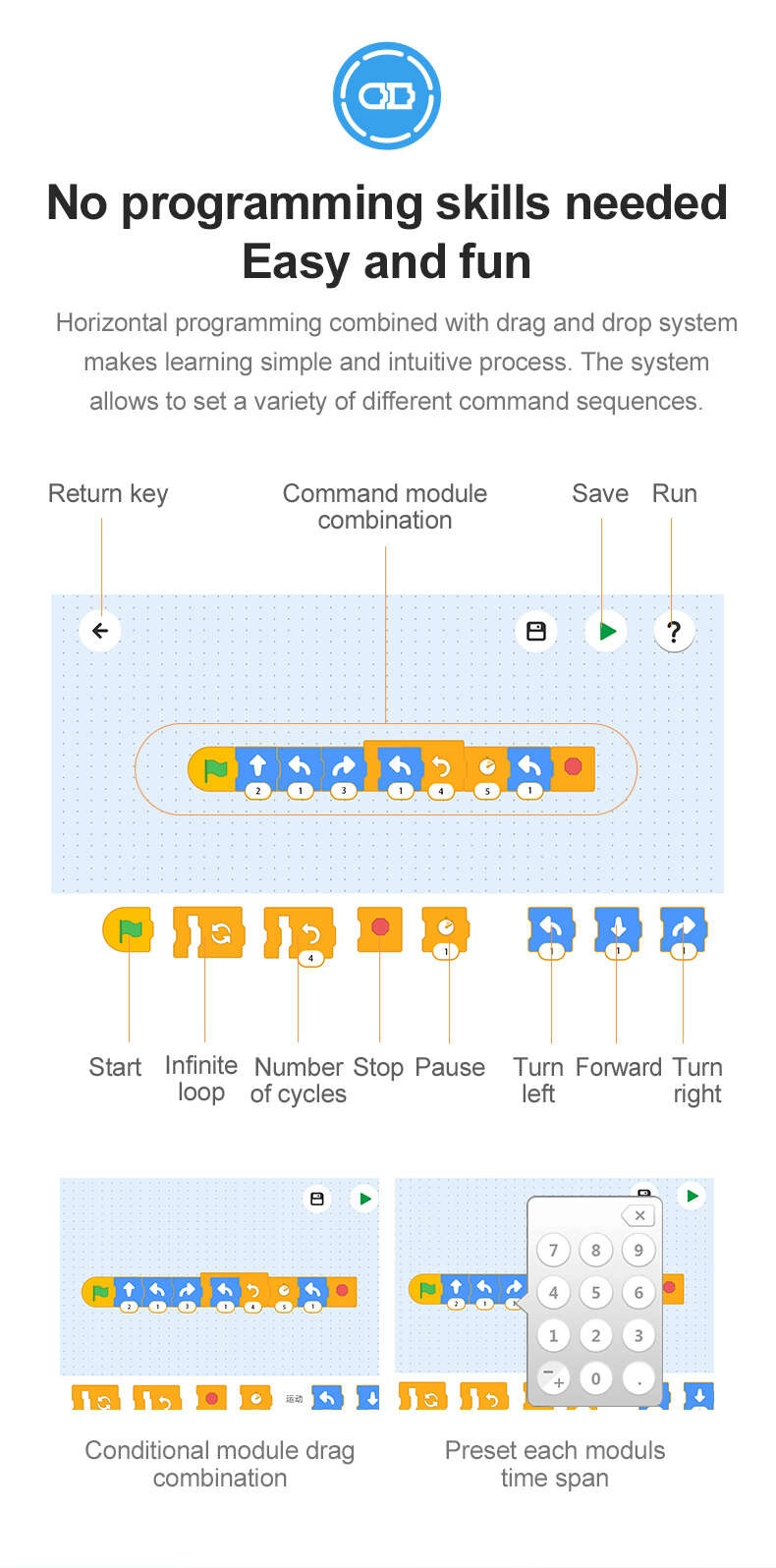 - Control remoto, Programación Scratch, Control giroscópico, Modo de ruta
