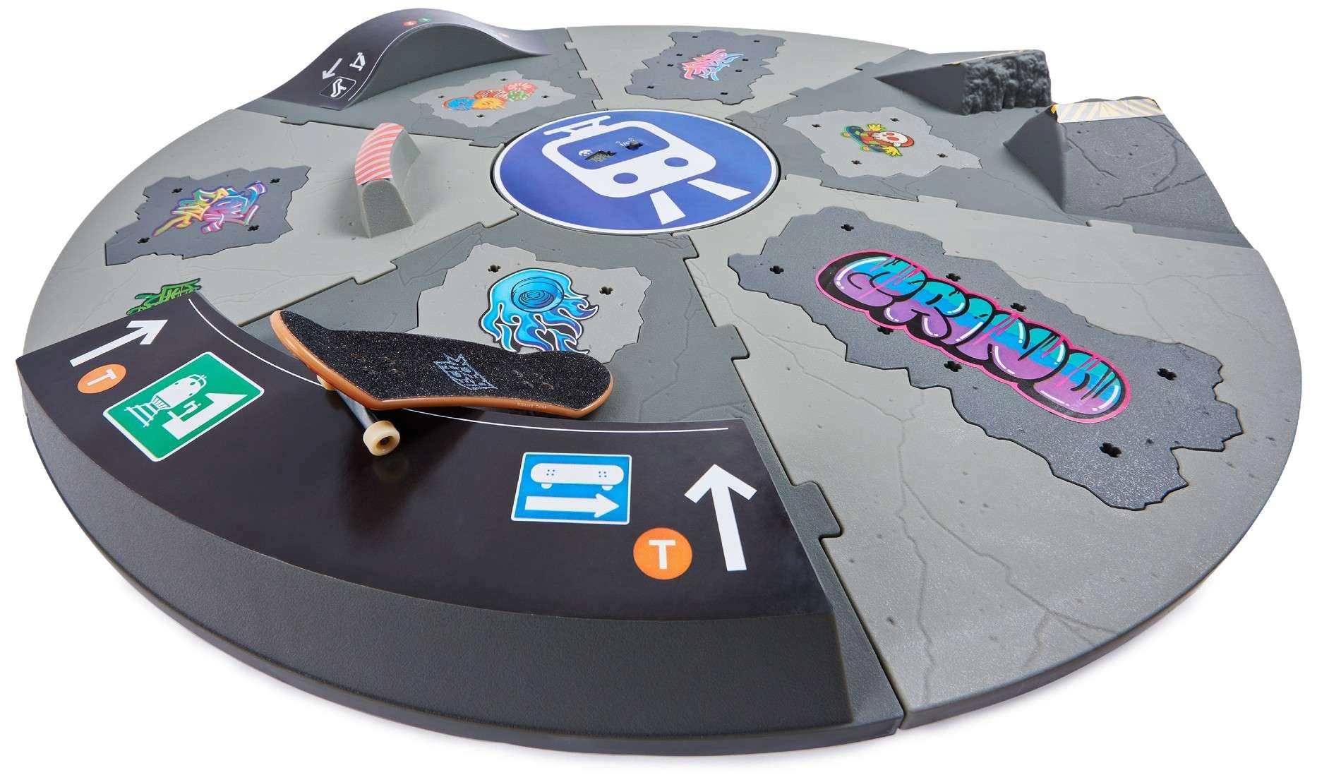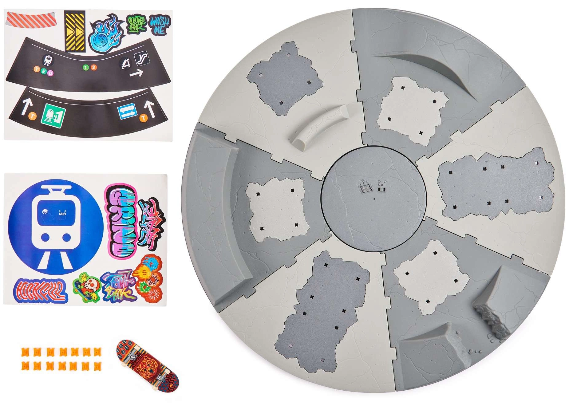 Montate un skatepark compacto en la mesa y muestra lo mejor del fingerboarding. La base giratoria con segmentos, rampas y barandillas permite un giro fluido de 360°, así puedes cambiar la dirección de la rodada y la dificultad de los trucos sin reconstruir el parque. Ideal para entrenar ollies, grinds y manuals.