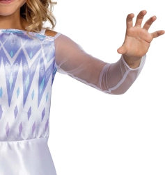 El corpiño está adornado con motivos geométricos “helados” y un sutil brillo que aportan al disfraz el aspecto auténtico del querido personaje de Frozen.