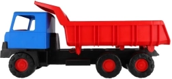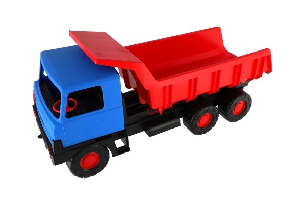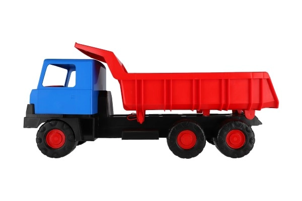 Este robusto camión de plástico con cabina azul y caja basculante roja encantará a los pequeños constructores tanto en casa como en el arenero. Gracias a su longitud de 75 cm, a las ruedas resistentes y al volquete funcional, puede transportar arena, piedritas y juguetes. Su construcción ligera y segura fomenta el juego creativo y al aire libre.