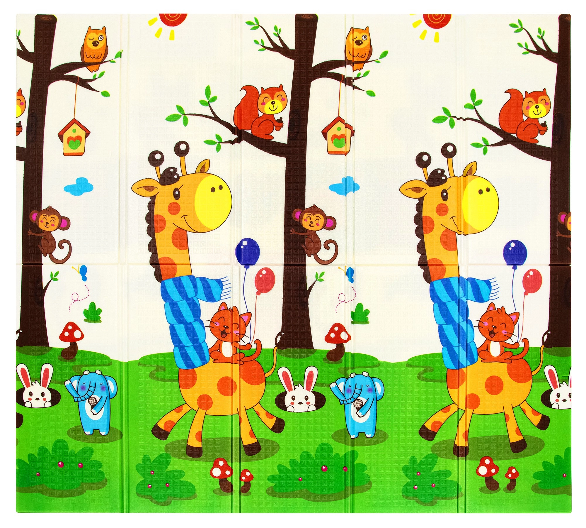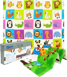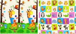 La espuma XPE de primera calidad proporciona a la esterilla HUMBI una excelente absorción de impactos, aislamiento térmico del suelo frío y una larga vida útil. El diseño reversible con jirafas y una cuadrícula de animalitos fomenta el desarrollo sensorial y convierte la esterilla en un bonito complemento tanto para el cuarto infantil como para el salón.