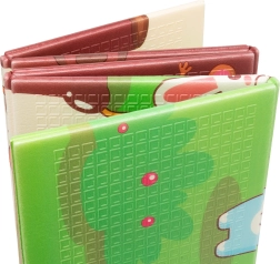 La esterilla es hipoalergénica, sin olor y no contiene formamida, ftalatos, PVC ni BPA. El acabado superficial antideslizante y suavemente texturizado ayuda a gatear y caminar con seguridad. La construcción plegable permite un plegado rapidísimo y un almacenamiento compacto bajo la cuna o entre los muebles; todo ello se completa con una bolsa de transporte con cierre.