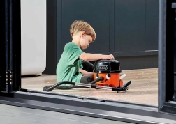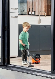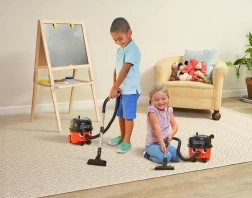 El popular HENRY en versión infantil convierte la limpieza en diversión. Su diseño real con carita sonriente, cuatro ruedas y tubo transparente entusiasma a los pequeños ayudantes. La aspiradora realmente aspira suciedad pequeña y ligera (p. ej., confeti o bolitas de poliestireno) y sigue siendo suave y segura desde los 3 años.