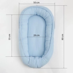 El nido es ideal para un uso versátil: en la cuna, el cochecito, el sofá o en el suelo. Los bordes suaves ayudan a crear una postura cómoda para dormir y descansar, y el algodón transpirable favorece un microclima saludable.