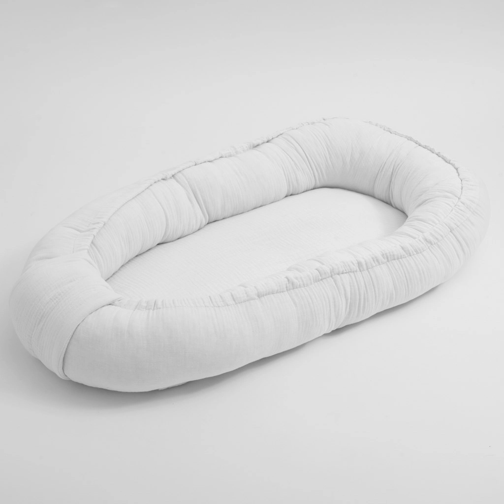 El suave nido de muselina New Baby en color blanco ofrece al bebé un entorno seguro y cómodo en casa y durante los viajes. Gracias a sus bordes acolchados y al material de algodón transpirable, el pequeño se siente tranquilo y protegido, pudiendo así dormir mejor, descansar y jugar. Ideal para colocar en la cuna, el sofá, el suelo o el cochecito.