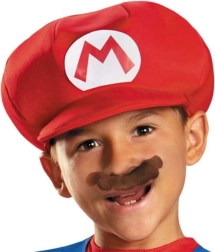 - Set completo: mono rojo y azul con botones amarillos, gorra, bigote