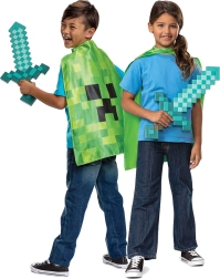 Entra en el mundo de Minecraft con el set original de la marca Disguise: espada de diamante de plástico con empuñadura ergonómica y capa con rostro de Creeper. A los niños les encantará al instante el auténtico aspecto “pixelado” y lo fácil que es llevar la capa.
