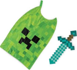 Ligera capa verde con el icónico rostro de Creeper; se ata fácilmente y transforma al niño en un héroe de Minecraft en cuestión de segundos.
