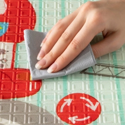 La espuma XPE de calidad prémium no tiene olor, es no tóxica y resistente. Gracias a su grosor de 0,8 cm, aísla del frío y ofrece absorción de impactos en caso de caídas. Su estructura antideslizante ligeramente texturizada favorece el gateo y la marcha seguros y, al mismo tiempo, estimula el desarrollo sensorial del niño.