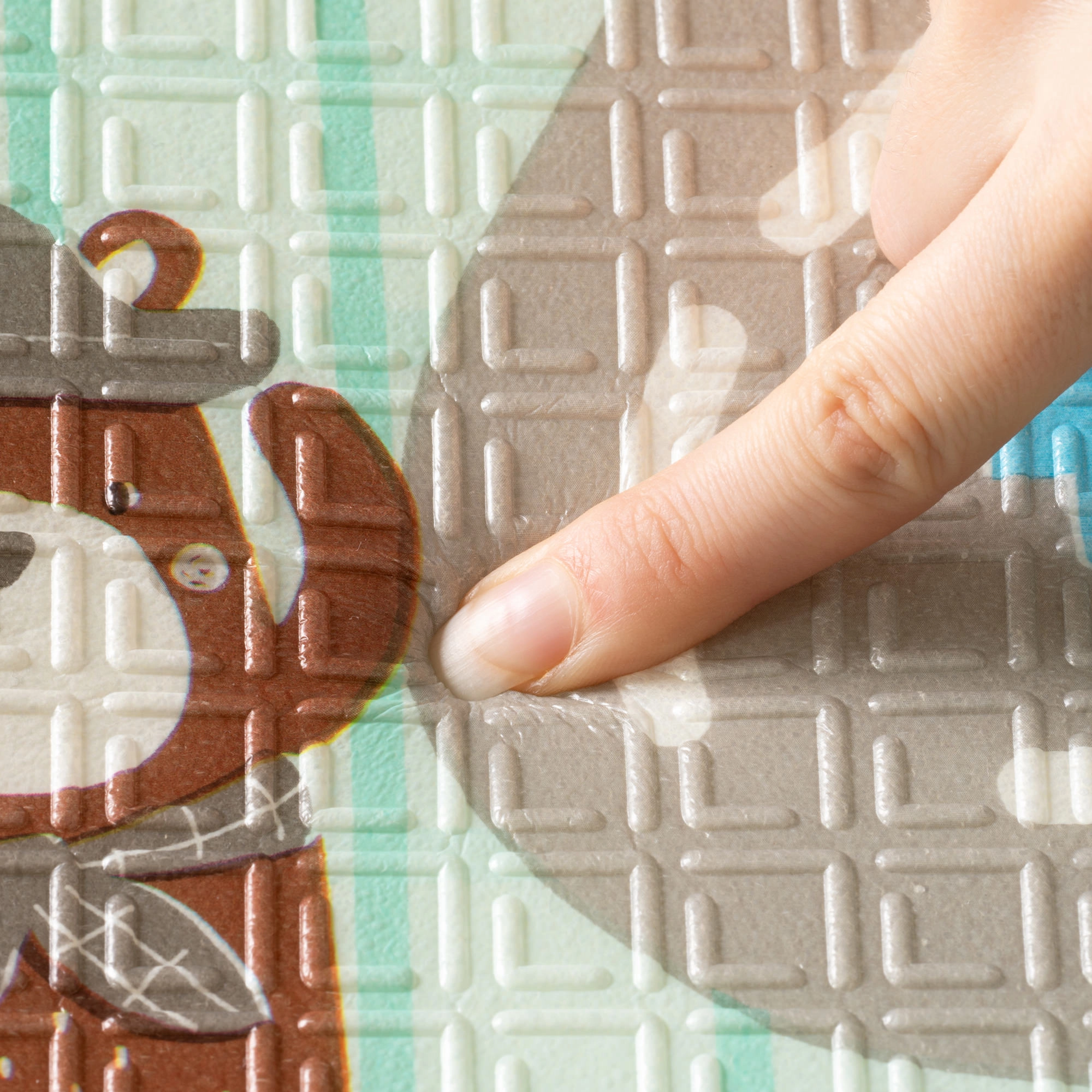 La espuma XPE gruesa (0,8 cm) protege en las caídas y aísla del suelo frío y duro para mayor comodidad durante el juego y el descanso.