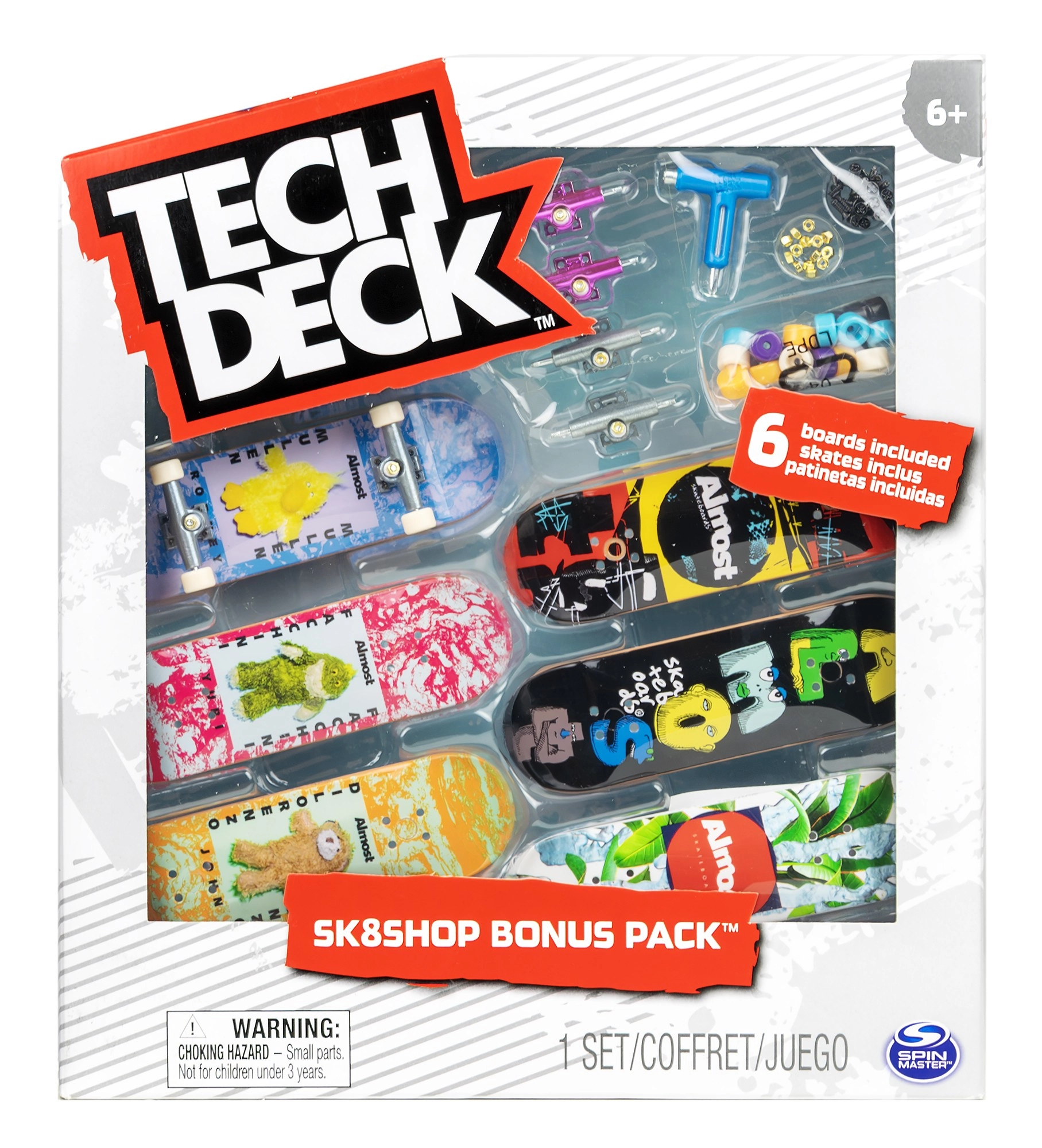 Descubre el mundo del fingerboarding con el Tech Deck Bonus Pack, un set completo para montar tus propios mini monopatines. Incluye 1 fingerboard listo y 5 tablas adicionales con lija, para que puedas empezar de inmediato a practicar trucos y mejorar tus habilidades de coordinación. Una gran elección para fans de marcas como ALMOST e ideal para niños a partir de 6 años.