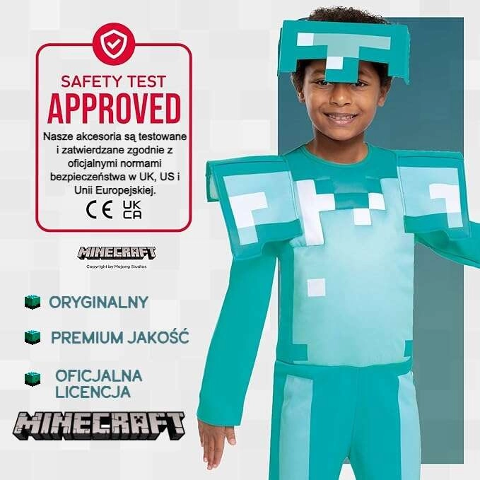 Este disfraz con licencia oficial de MINECRAFT de armadura de diamante convierte a los niños en héroes de su juego favorito. El mono suave con estampado pixelado y llamativos paneles en los hombros se complementa con un casco ligero que aporta el aspecto icónico. Gracias a los materiales agradables, el disfraz es cómodo incluso durante un uso prolongado.