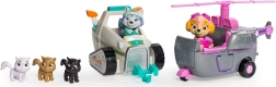 ¡Emprende una misión de rescate con el set de PAW Patrol con Skye y Everest! En el paquete encontrarás el helicóptero de Skye, la moto de nieve de Everest y 5 figuras, incluidas 3 adorables crías de gato. Los vehículos cuentan con rotor giratorio, ruedas y orugas móviles y las figuras de las perritas tienen la cabeza articulada, ideal para el juego creativo y aventurero de niños a partir de 3 años.