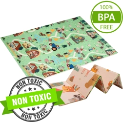 La espuma premium XPE es inodora, no tóxica y duradera. Gracias a su grosor de 0,8 cm, aísla del frío y proporciona un acolchado confortable para el gateo y los primeros pasos. La impresión a doble cara favorece el desarrollo sensorial e impulsa el juego creativo con cochecitos por las carreteras y el aprendizaje de los animales.
