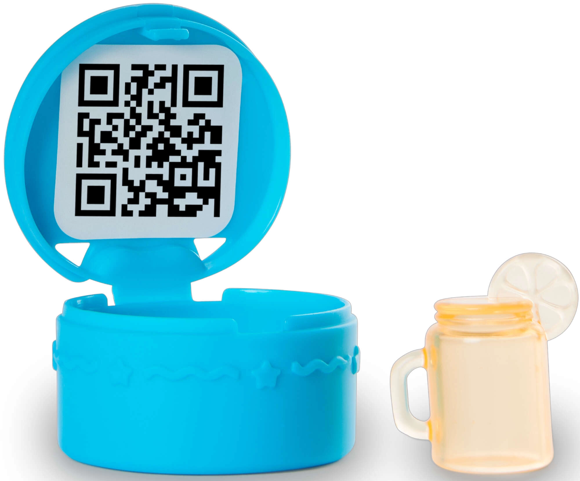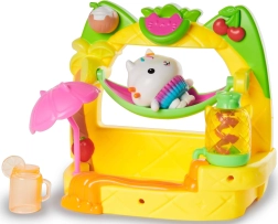 - Contenido del paquete: figura de Cakey, marco de balcón con hamaca, puesto de frutas, vaso, sombrilla, fruta/accesorios, caja secreta.
