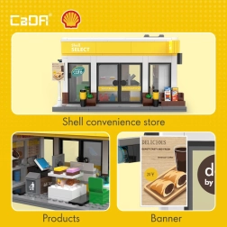 El set de CaDA ofrece una mini tienda SHELL de una sola planta detalladamente elaborada, con elementos realistas como puertas correderas/abatibles, vitrinas, carteles y mobiliario interior. Ideal para niños a partir de 8 años y para adultos aficionados a las construcciones que aprecian la precisión y un modelo de exhibición con estilo.