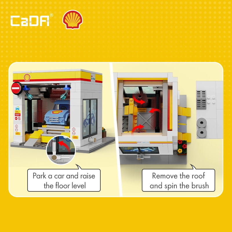 Este set detallado presenta un lavadero SHELL de una sola posición con elementos abatibles, ventanas transparentes y detalles funcionales para una experiencia de juego aún más realista. Gracias a la compatibilidad con otros sets de CADA, podrás ampliar fácilmente tus escenarios urbanos y tu parque de vehículos.