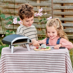 El set está diseñado para un juego seguro y significativo: las patas estables evitan que el horno se tambalee, la amplia abertura facilita introducir la pizza y el cortador ayuda a dividir en porciones al servir. El juego fomenta las habilidades sociales, la imaginación y la autonomía: los niños pueden seguir “recetas” o inventar sus propias combinaciones de ingredientes.