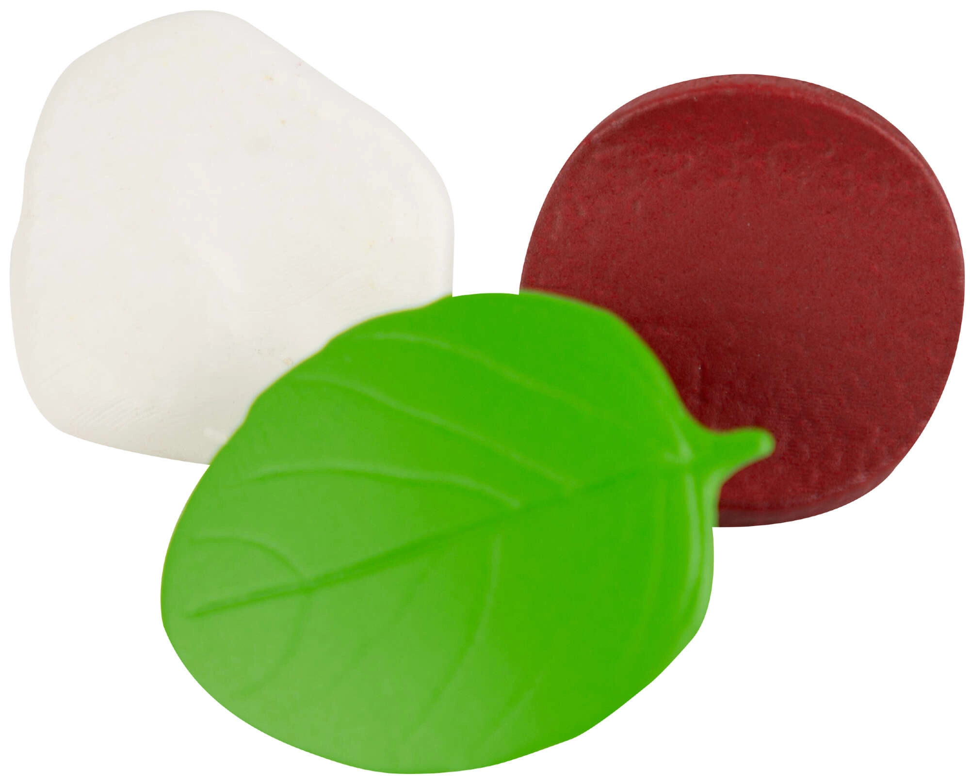 - 18 piezas de complementos (quesos, tomates, hojas de albahaca, etc.)