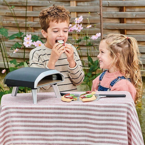 La amplia abertura, las patas metálicas estables y el horno “auténtico” con fácil inserción de la pizza en la pala convierten el juego en una verdadera experiencia culinaria.