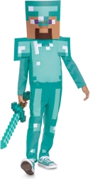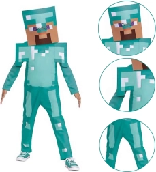 Este disfraz con licencia del popular juego Minecraft aporta la auténtica armadura de diamante turquesa con su característico estampado pixelado. El material ligero y agradable asegura comodidad durante todo el día y facilidad de movimiento para jugar y bailar.