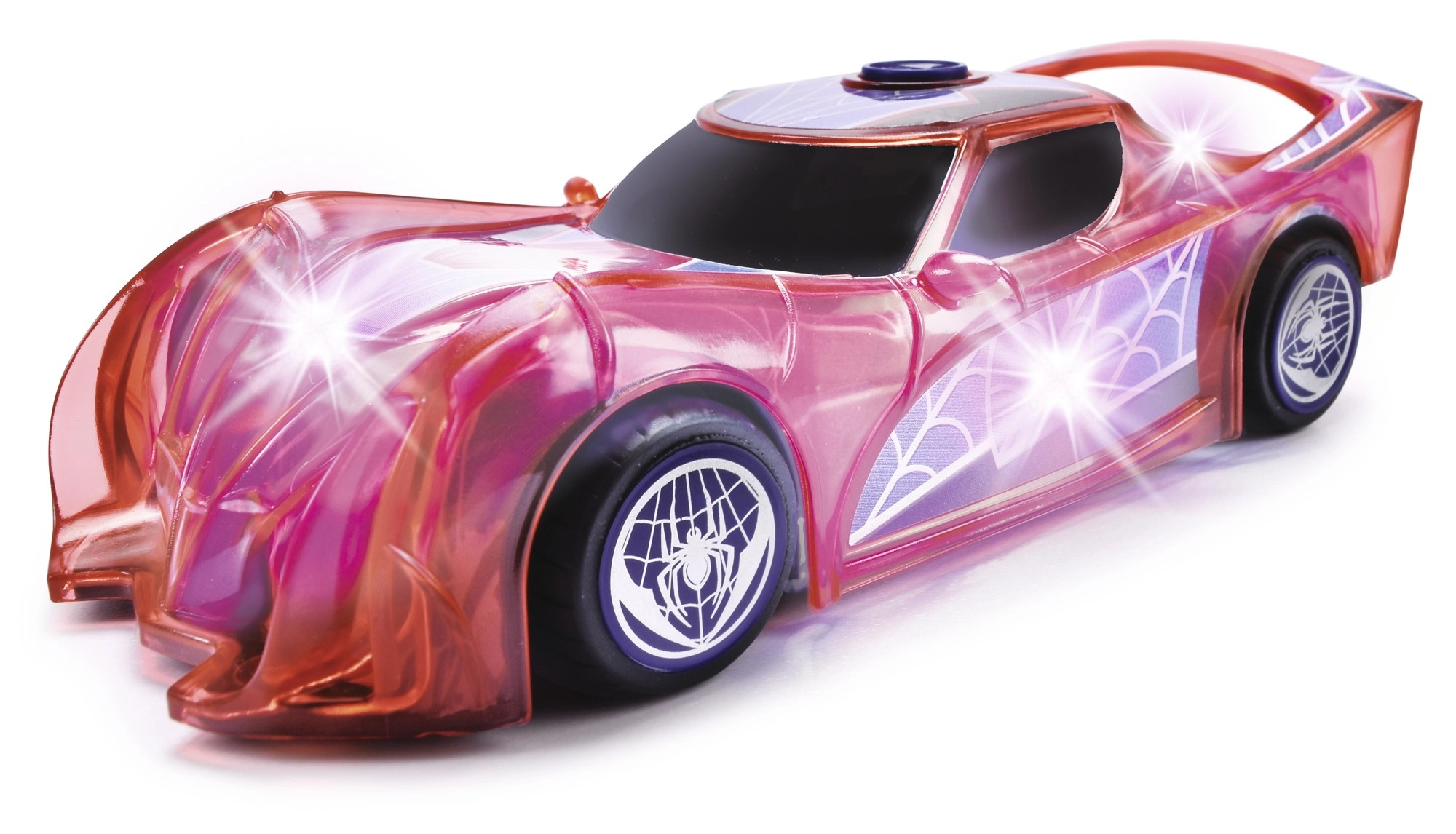 La carrocería translúcida con motivo de telarañas se ilumina al conducir. Las luces refuerzan la atmósfera emocionante y aumentan la diversión del juego incluso en la oscuridad.
