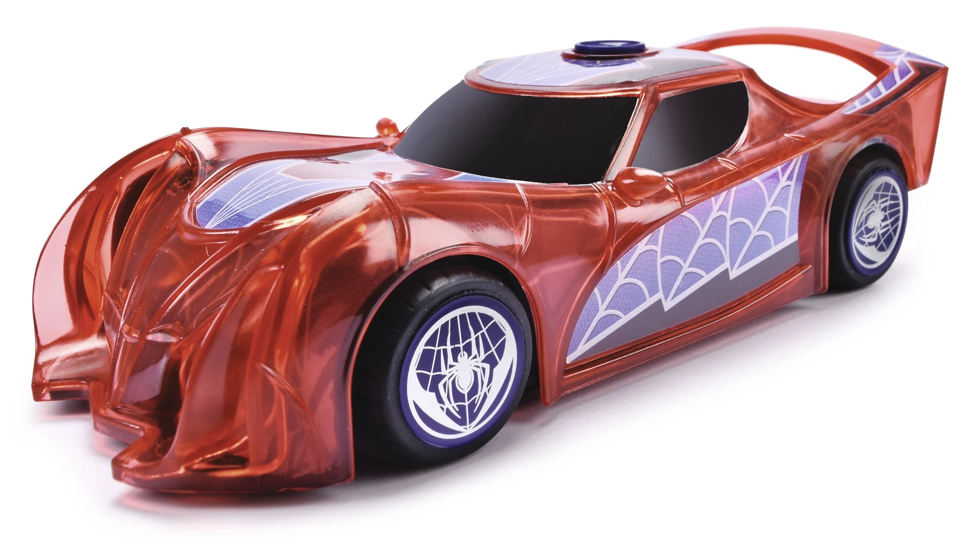 Carrocería con telarañas, formas deportivas y alerón. Ideal para recrear escenas del mundo MARVEL y para exposición de colección.