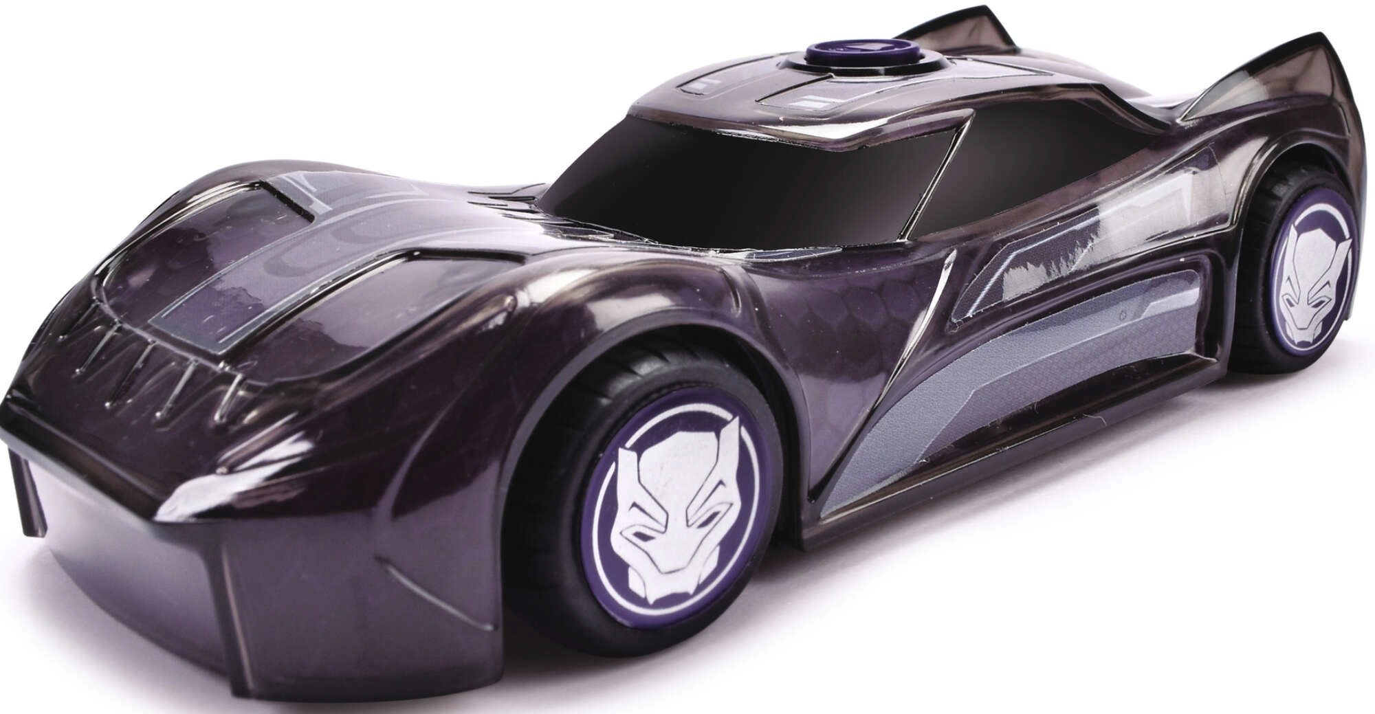 Emprende una conducción llena de acción con el coche de MARVEL Black Panther. La carrocería con motivos de la máscara y líneas futuristas refleja a la perfección el estilo del héroe favorito. Al pulsar el botón morado se activan el brillo de las luces por toda la carrocería y los sonidos auténticos del vehículo y del personaje para una experiencia de juego aún más intensa.