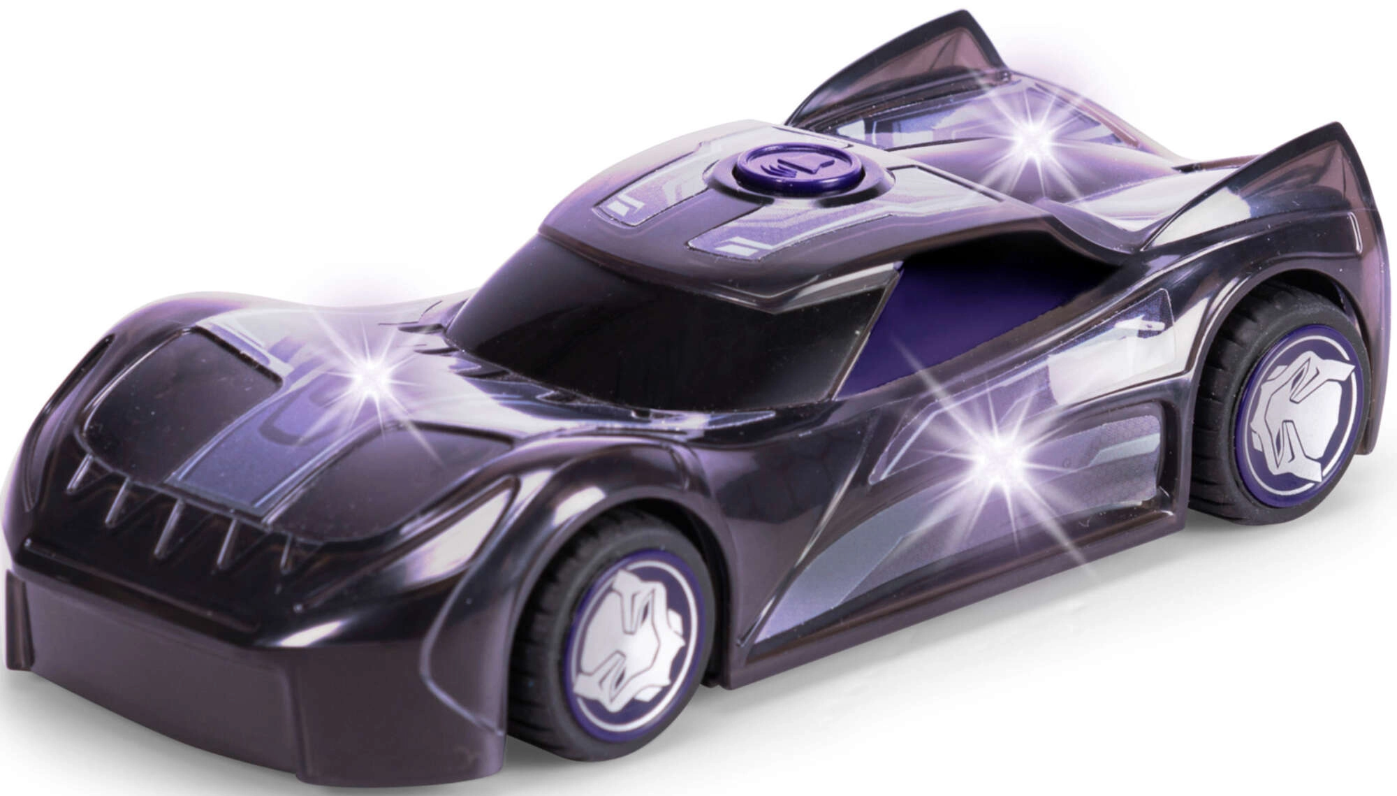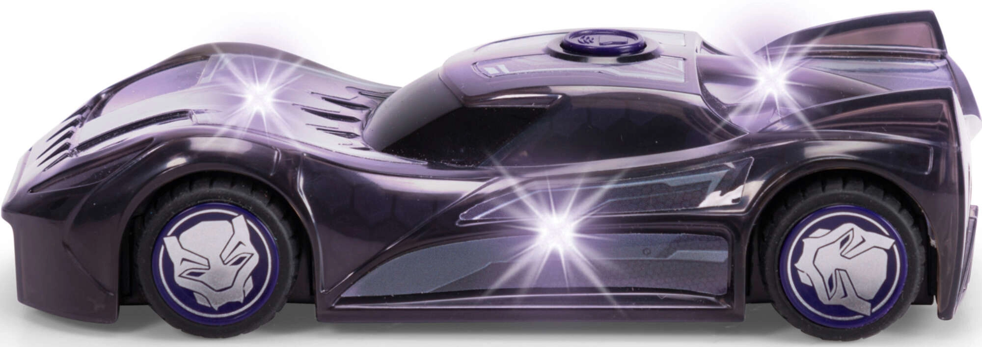 Brillantes efectos LED iluminan el coche y realzan el aspecto de superhéroe de BLACK PANTHER: ideal para jugar por la tarde-noche y para escenas de acción.