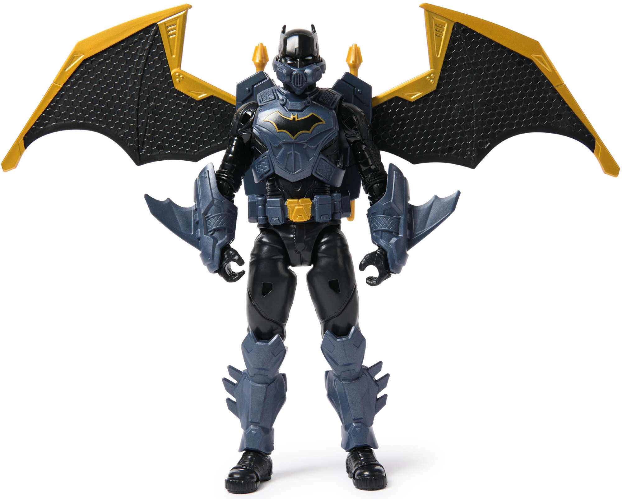 El set incluye alas, armadura, guantes y proyectiles. Combina los accesorios, desata la acción y crea tu propia versión de BATMAN.