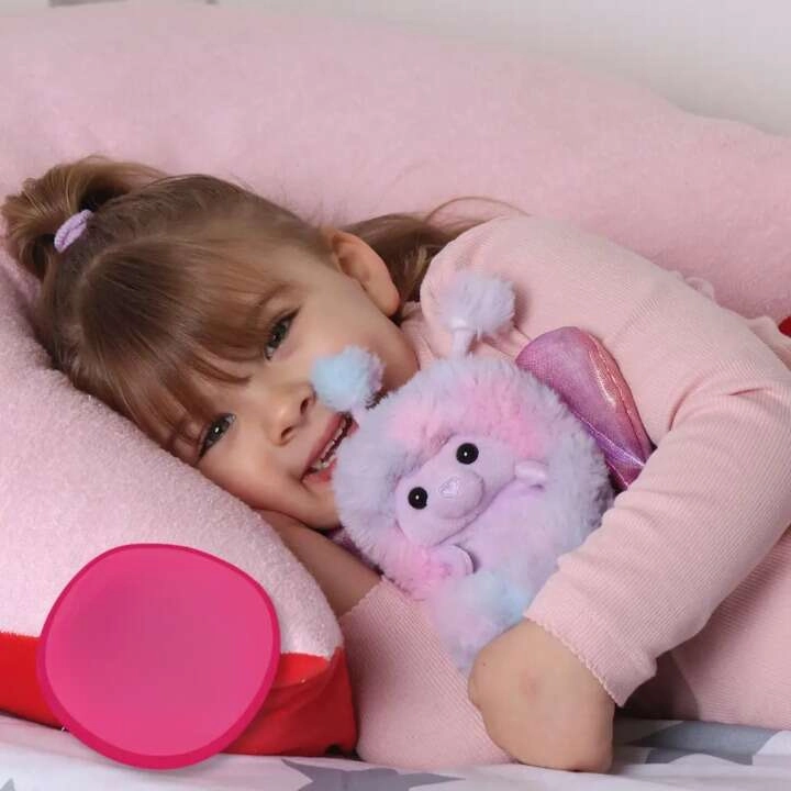 Descubre el mundo mágico de CURLIMALS con el osito Bella, que se ganará el corazón de cualquier niño. Tiene pelaje muy suave y sedoso, carita bordada y ojitos de plástico. En la espalda encontrarás dos alitas rosas que se mueven junto con el juguete y además brillan en la oscuridad – el compañero perfecto para la habitación y para llevar de viaje.