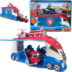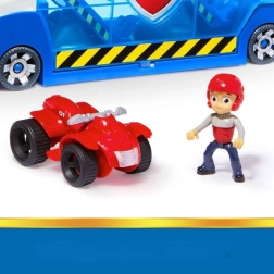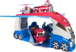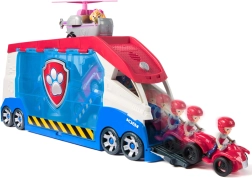 El set incluye a los héroes favoritos: Ryder con quad rojo, Chase con coche de policía, Marshall con camión de bomberos y Skye con helicóptero. Las figuras tienen cabezas articuladas y se colocan fácilmente en los vehículos. El camión alberga hasta 4 vehículos pequeños, cuenta con 2 plataformas móviles y rampas delanteras y traseras para una salida rápida hacia las misiones de rescate.