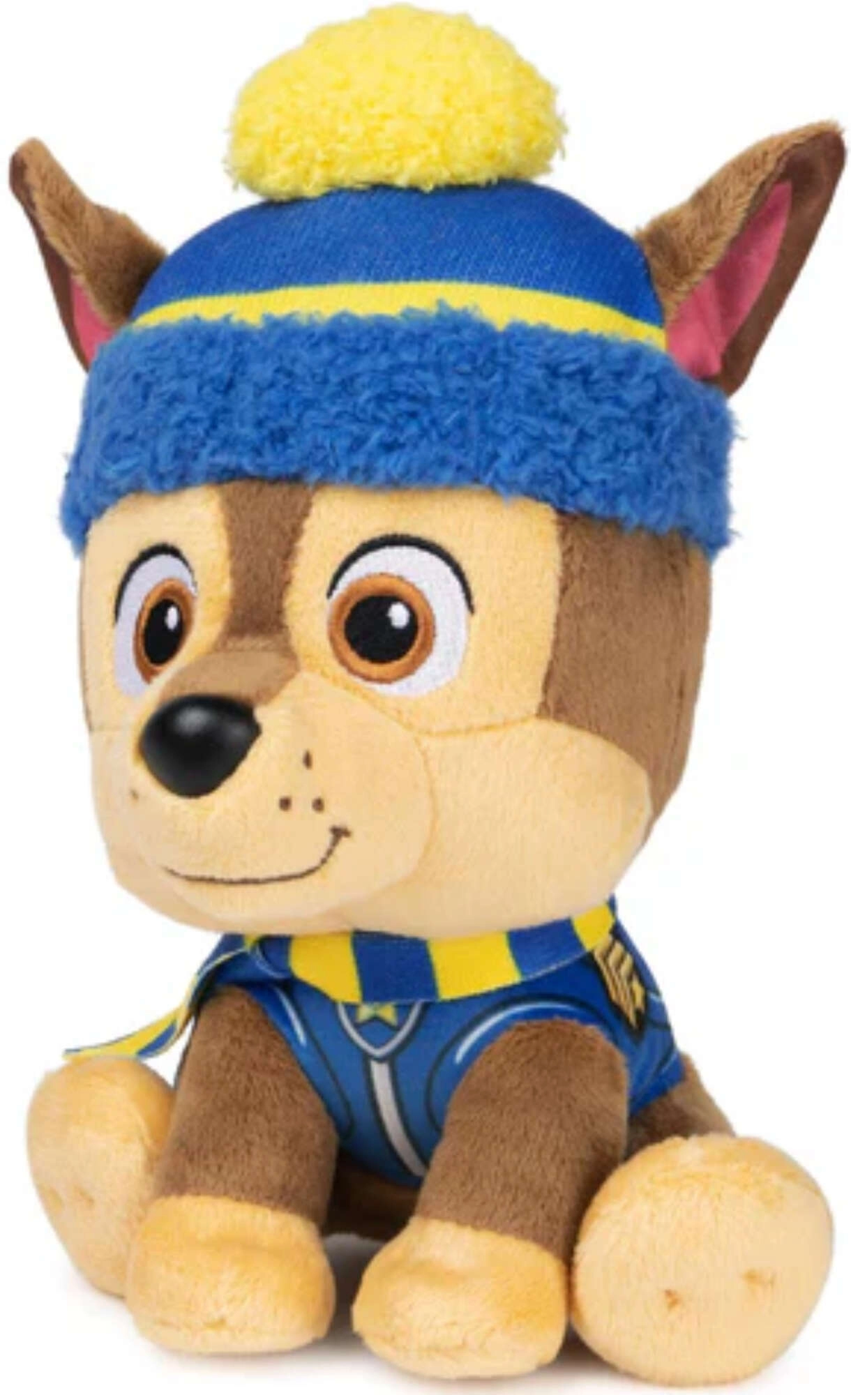 CHASE luce su típico uniforme policial azul, complementado con gorro de invierno con pompón y bufanda con los colores del equipo. Gracias a su tamaño compacto, los niños pueden llevarlo fácilmente al cole, de excursión o a la cama. El compañero perfecto para el juego simbólico, el desarrollo de la imaginación y la alegría diaria.
