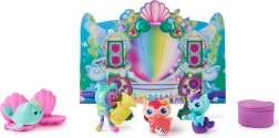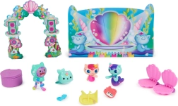 Esta escena submarina de la popular serie GABBY'S DOLLHOUSE es ideal para pequeños fans de la música y la fantasía. El set incluye a los personajes favoritos DJ Catnip, MerCat, Sunny Cat y Kitty Narwhal con aspecto auténtico y detalles llamativos. Los asientos de concha abatibles, el micrófono acoplable y el escenario plegable convierten cada día en un divertido espectáculo.