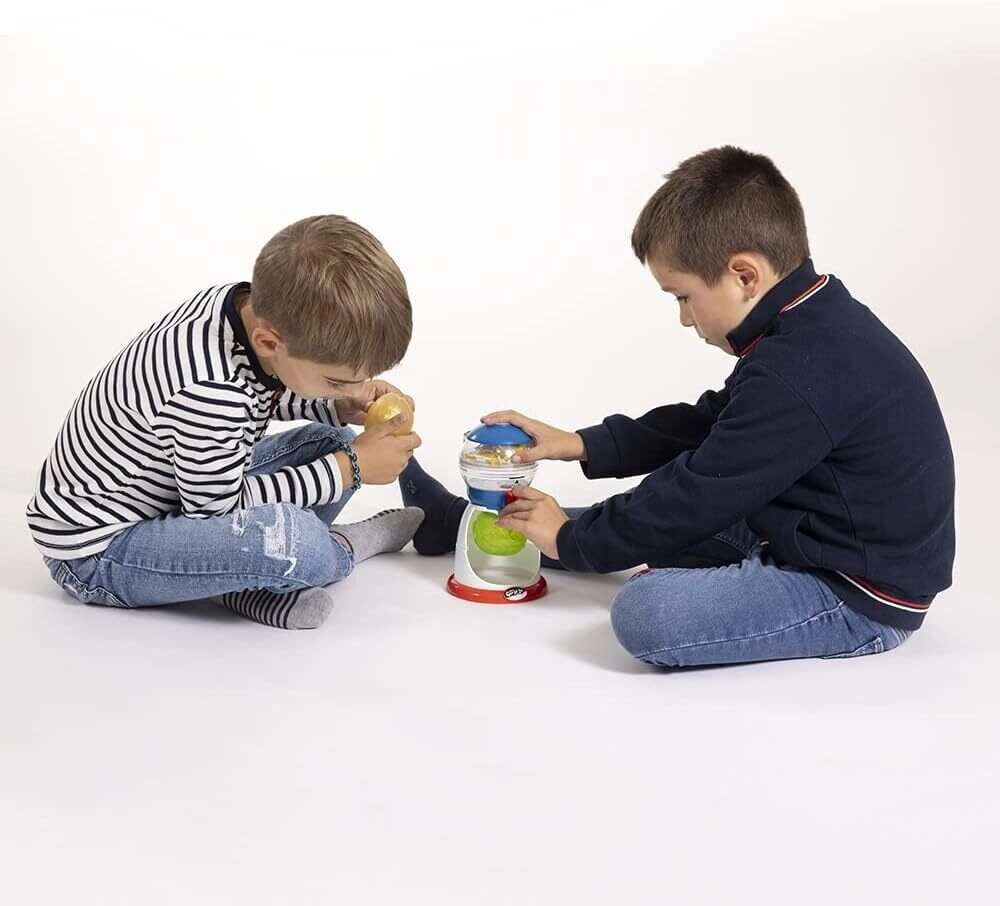 Con este set interactivo, los niños fabrican pelotas antiestrés únicas llenas de colores, purpurina y decoraciones. El depósito central transparente permite un relleno fácil, mientras que la rueda roja giratoria ayuda a cerrar la pelota de forma segura. En el paquete encontrarás tres pelotas de colores (roja, verde, amarilla) con motivos en relieve de superhéroes populares.