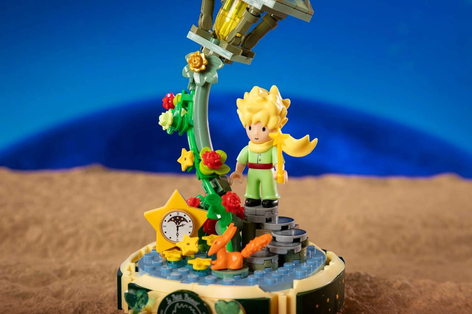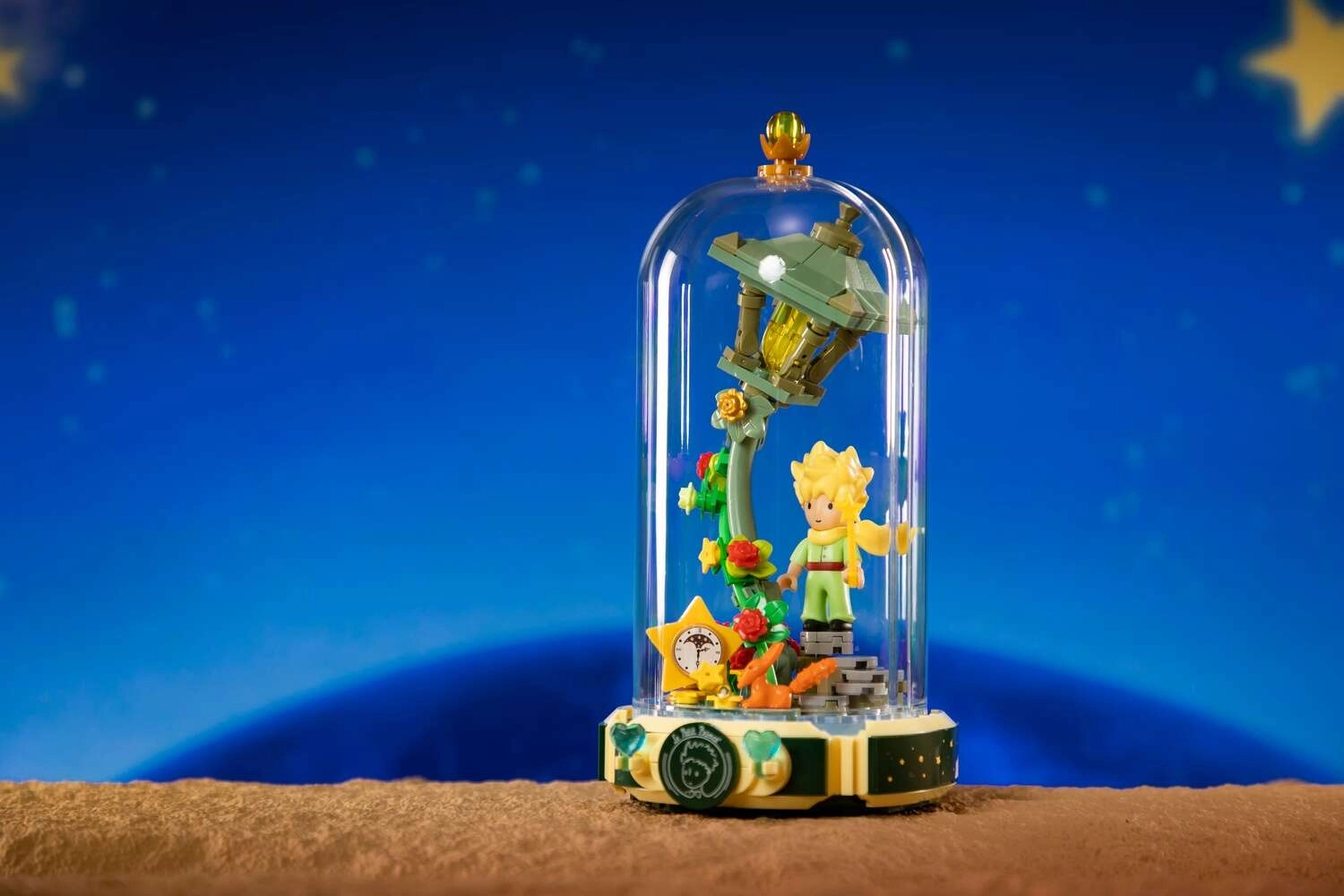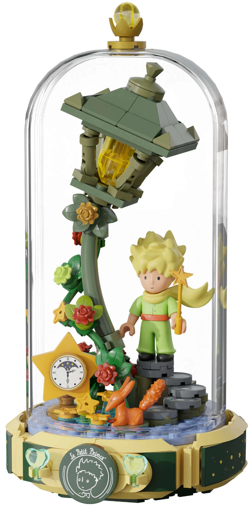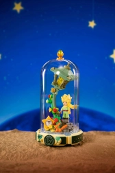Lleva a tu hogar la poesía de un relato atemporal. La lamparita con el motivo de El Principito y el zorro en la luna se alza sobre una base con estilo en forma de libro abierto con la inscripción “Le Petit Prince”. Las delicadas estrellas y elementos vegetales crean una atmósfera mágica, enfatizada por la luz integrada, ideal para acoger un dormitorio infantil o un rincón de lectura.