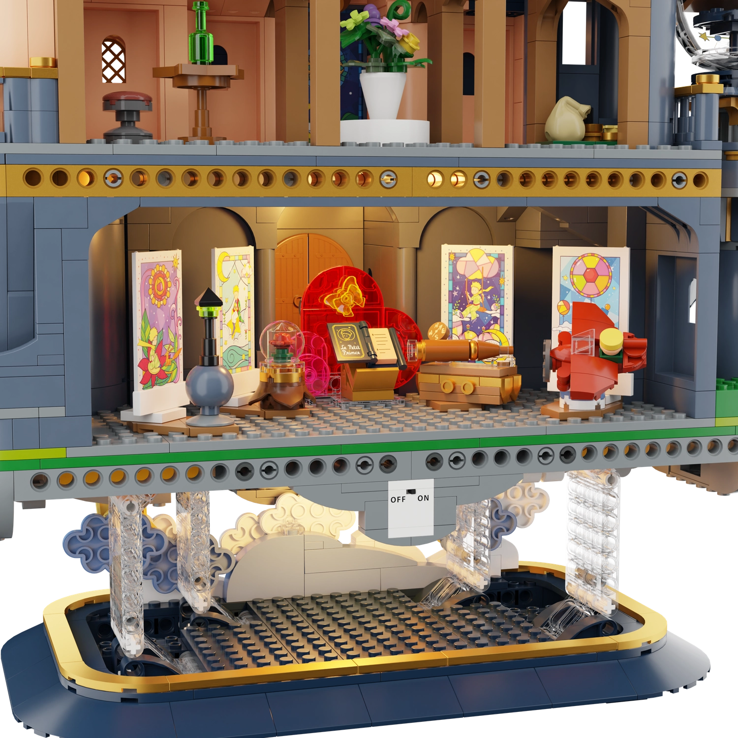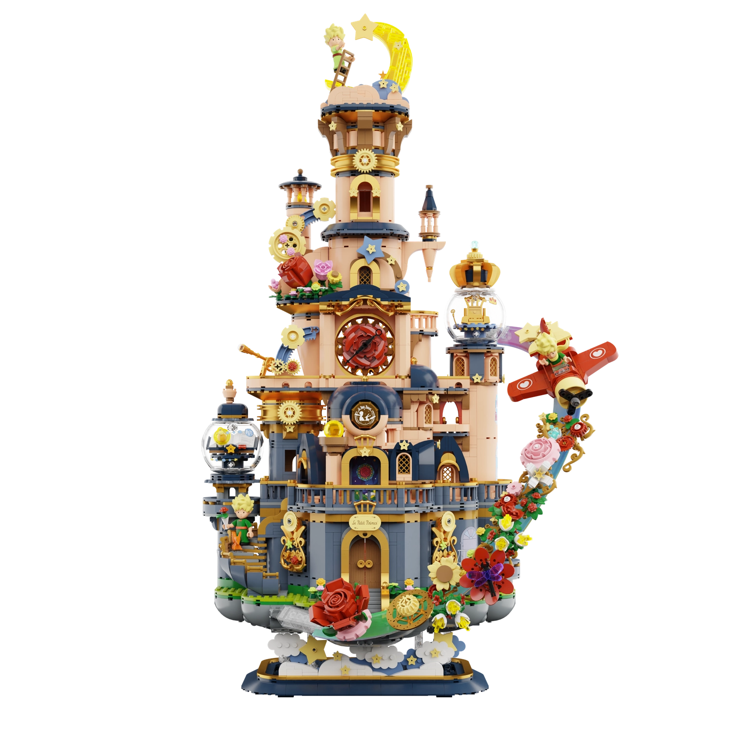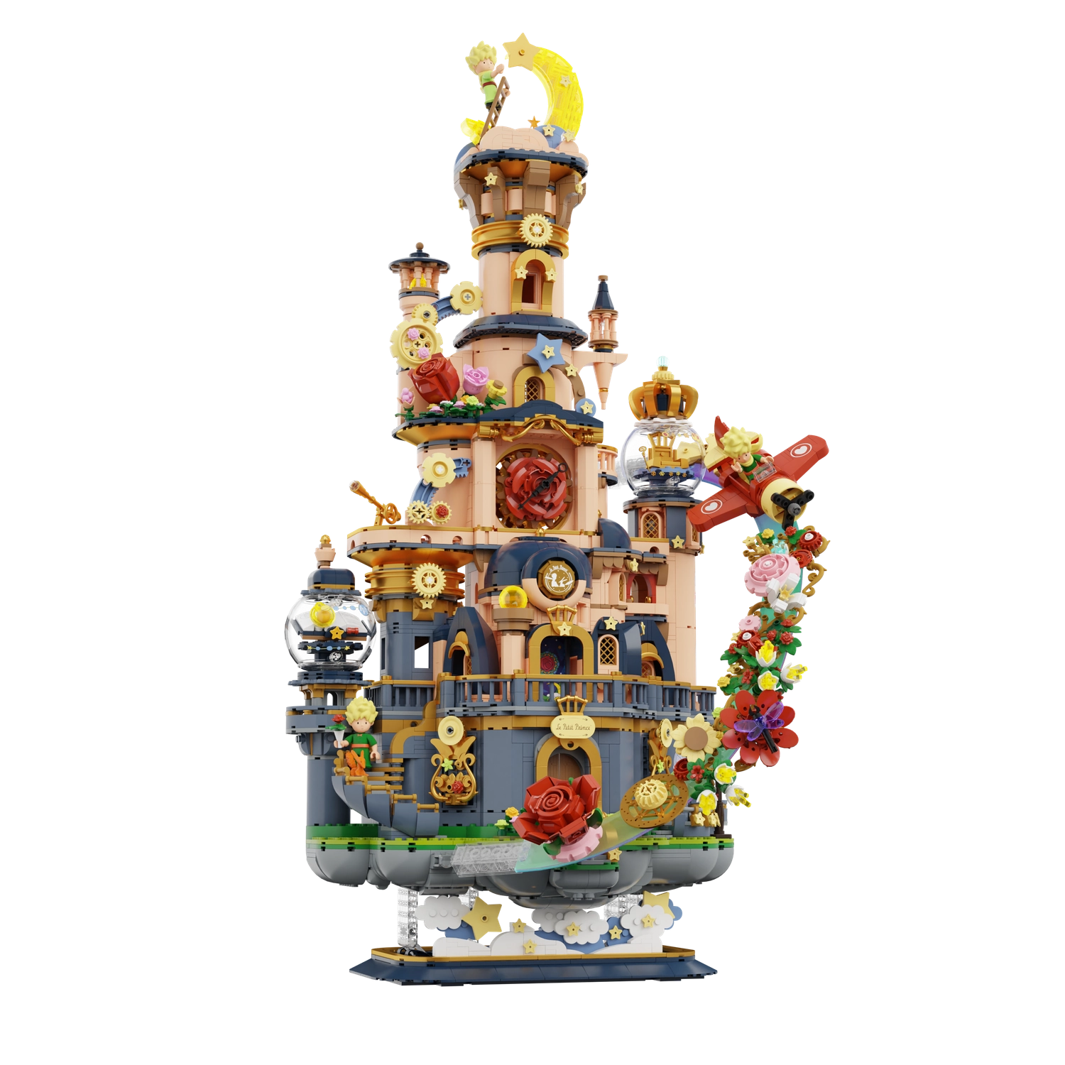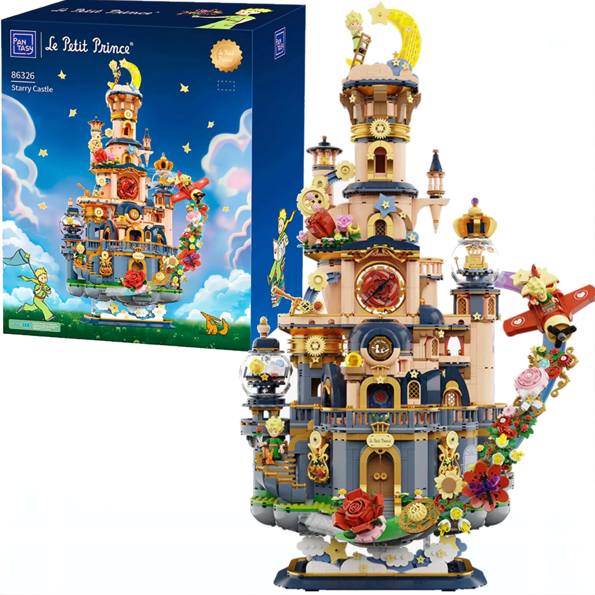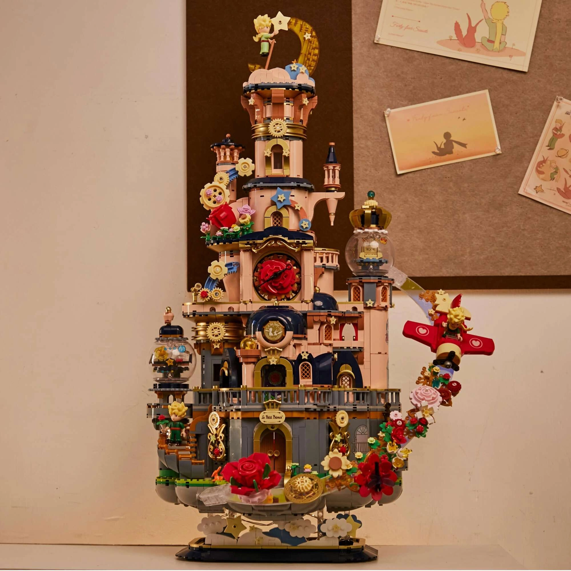 Adéntrate en el mundo poético de Le Petit Prince con un encantador modelo de castillo que parece flotar entre las estrellas. Sus torres elaboradas, balcones, motivos florales y engranajes visibles crean una escena impactante que destaca en cualquier estantería. Este set es ideal tanto para constructores creativos como para coleccionistas apasionados, desde la primera pieza hasta el último detalle.