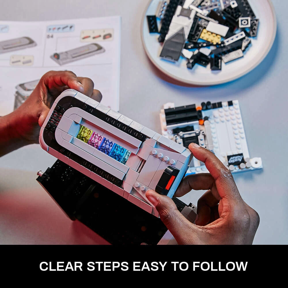 Gracias a las instrucciones claras con ilustraciones en color, el montaje es fluido y divertido. El modelo terminado destaca como una decoración con estilo para tu rincón de trabajo o tu cueva gaming. Las piezas de ABS resistentes se mantienen firmemente unidas y minimizan las juntas para un aspecto limpio y elegante.
