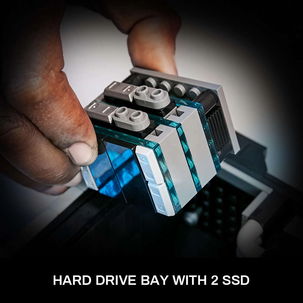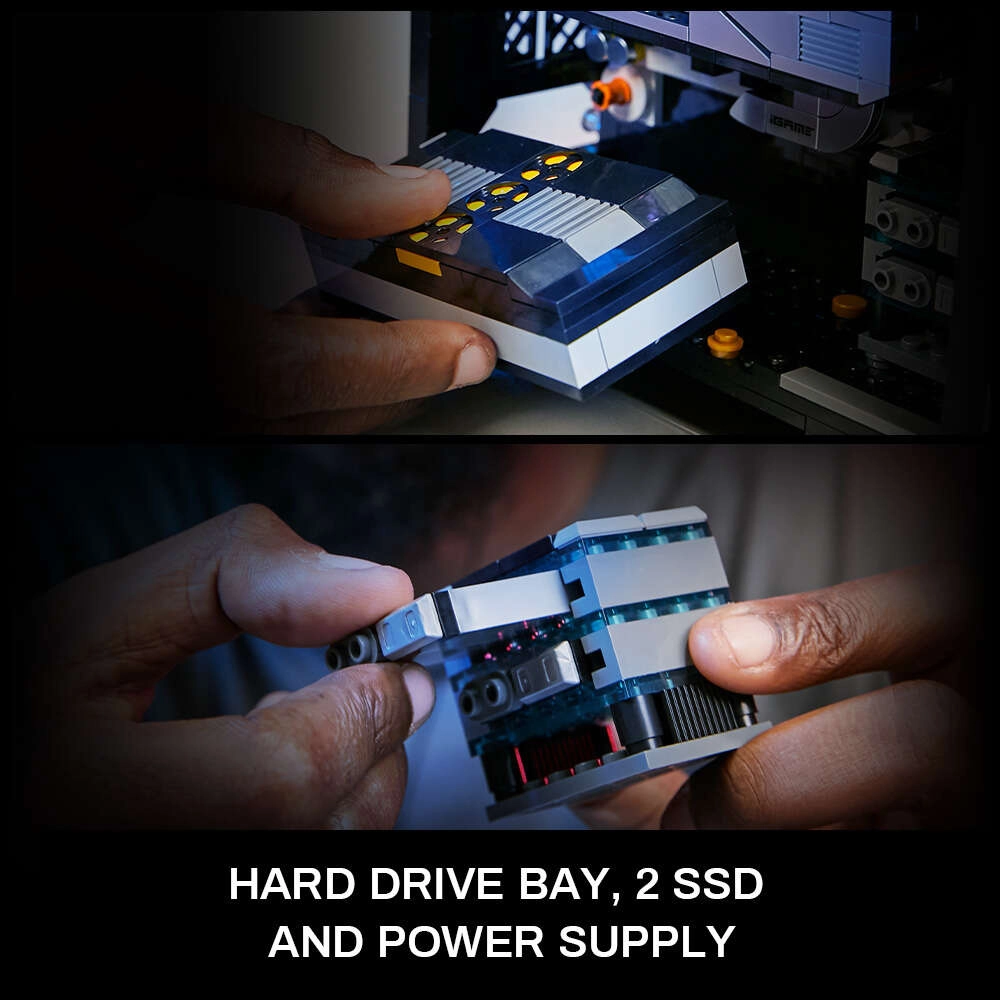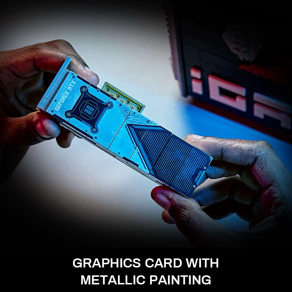 Descubre un set de construcción original que reproduce fielmente un escritorio gaming moderno. Cada módulo —desde la tarjeta gráfica, la fuente y el soporte para SSD hasta la placa base y la memoria DDR— se monta por separado, para que disfrutes de la sensación realista de “actualizar” el ordenador. La precisa impresión por tampografía en las piezas garantiza un aspecto bonito a largo plazo sin necesidad de pegar etiquetas.